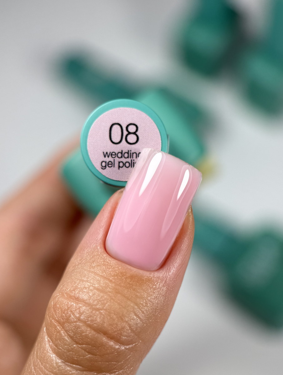 Сім нових відтінків із колекції WEDDING GEL POLISH 07–14 — це поєднання делікатного рожевого, теплих нюдових та кавових тонів, створених спеціально для найважливіших моментів. Вони пасуватимуть не тільки для весільного образу, а й для щоденного манікюру, даруючи естетику ніжності та спокою.