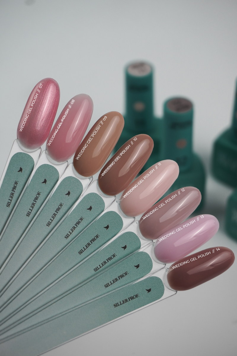 Сім нових відтінків із колекції WEDDING GEL POLISH 07–14 — це поєднання делікатного рожевого, теплих нюдових та кавових тонів, створених спеціально для найважливіших моментів. Вони пасуватимуть не тільки для весільного образу, а й для щоденного манікюру, даруючи естетику ніжності та спокою.