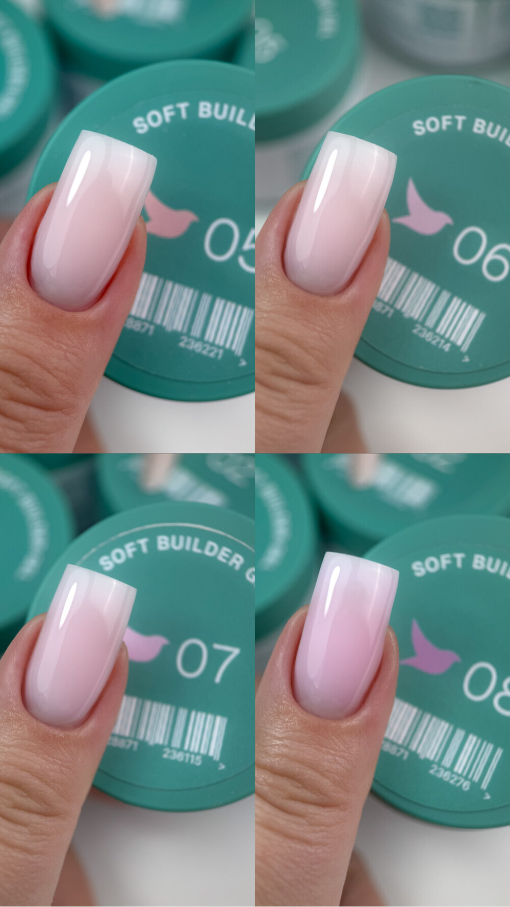 Soft Builder Gel – це колекція з восьми найпопулярніших кольорів, які закриють основні запити майстрів.