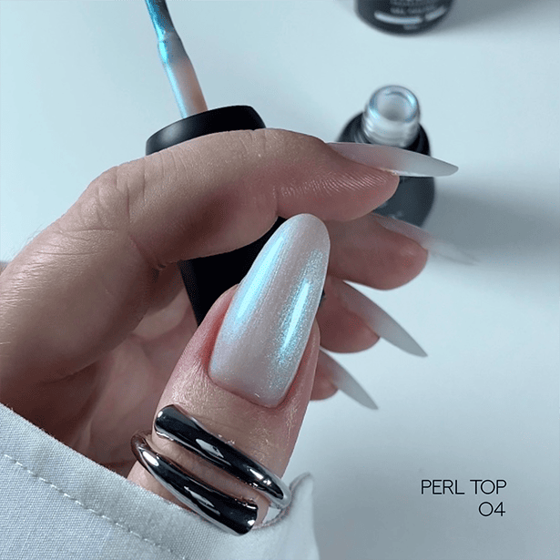 Perl top – це чудове поєднання перлинного блиску та ефекту втирки в одному флаконі. Забудьте про тривалі процедури нанесення та проблеми зі сколами. Тепер втирка та покриття звичайним топом доступні на одному етапі.