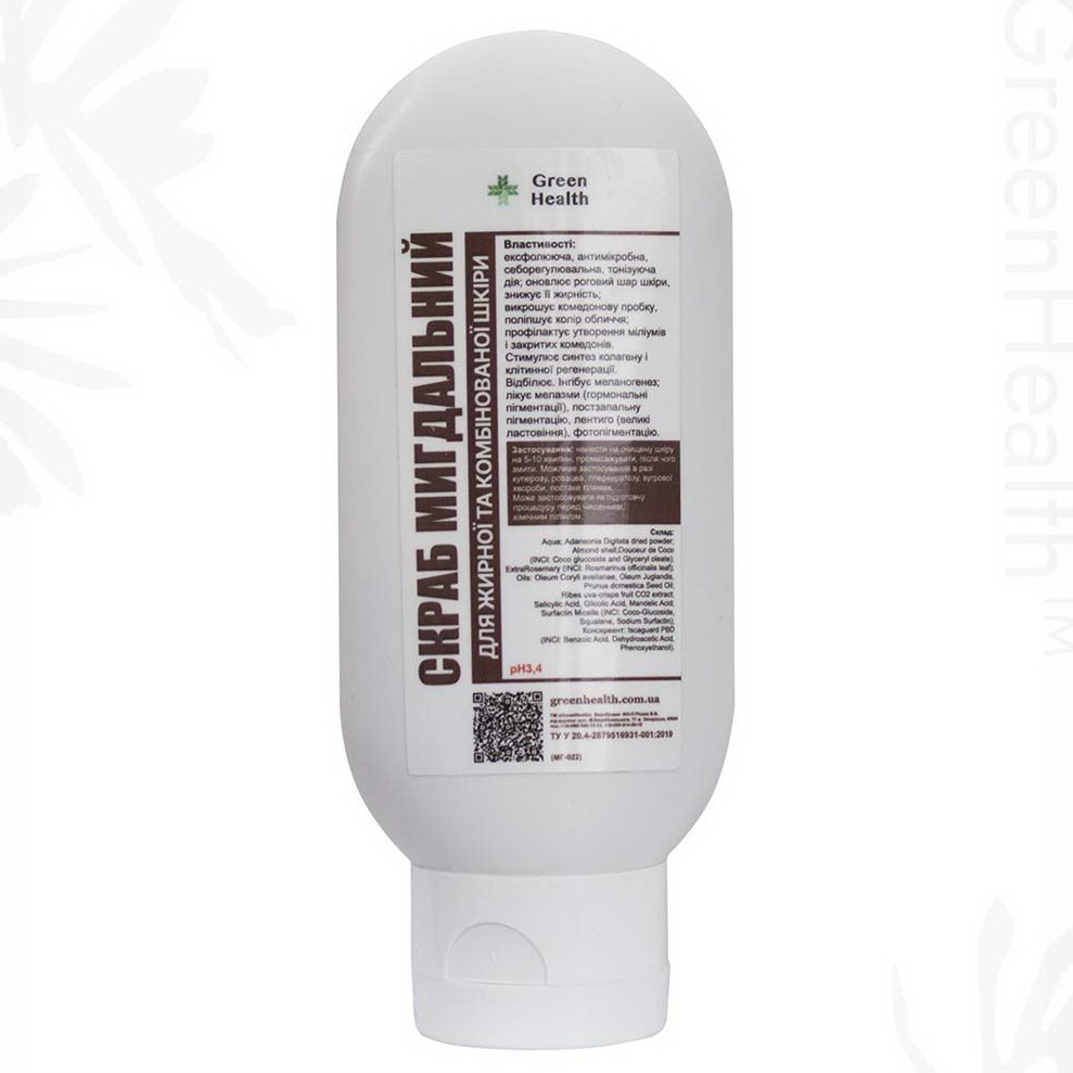 Скраб мигдальний для жирної та комбінованої шкіри обличчя Green Health МГ-017, 100 мл