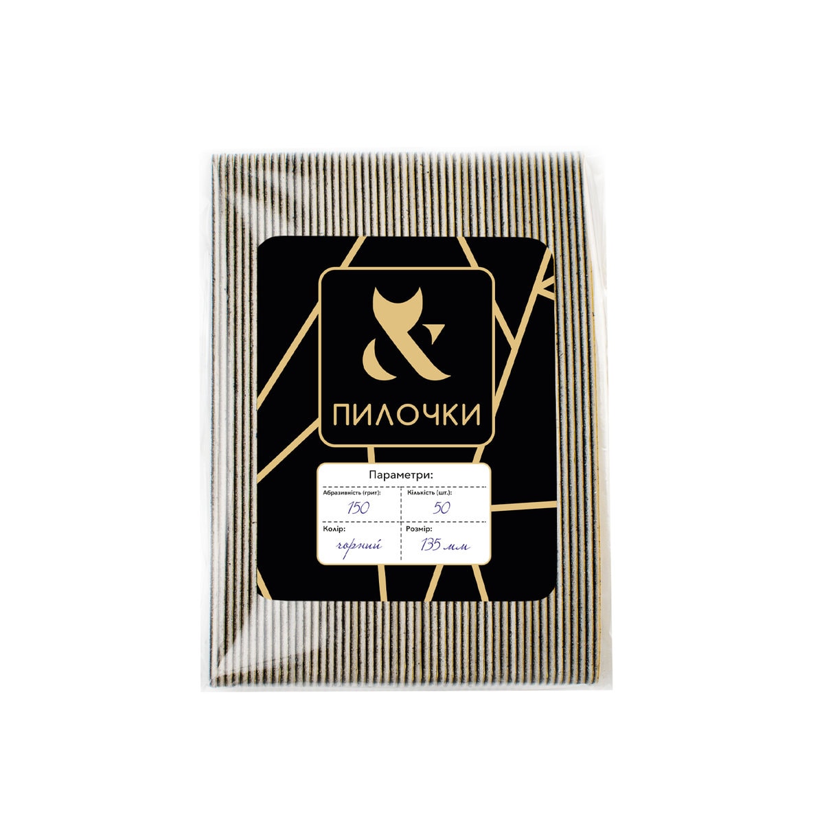 Пилочки чорного кольору: 100, 150 і 180 грит. Призначені для роботи з натуральними нігтями та штучним покриттям. Мають довжину 135 мм.