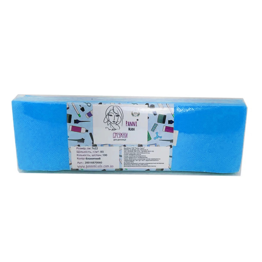 Смужки для депіляції Panni Mlada 7х22 см (100 шт/пачка) зі спанбонду 80 г/м2 блакитні