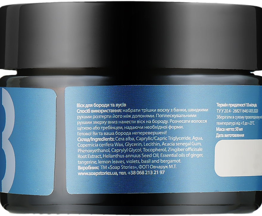 Віск для бороди Soap Stories №8 BLUE 100% NATURAL, 50 мл