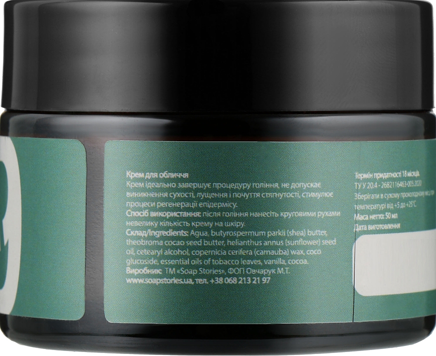 Крем після гоління Soap Stories №9 GREEN 100% NATURAL, 50 мл