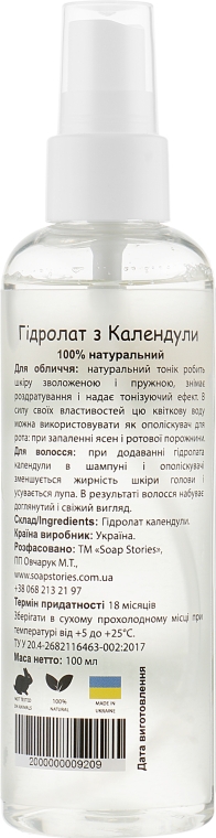 Купити Гідролат спрей Soap Stories Календула, 100 мл, ви зможете у нашому інтернет-магазині limonad з доставкою по всій Україні в тому числі і Київ, Дніпро, Одеса, Харків, Запоріжжя, Одеса, Львів та багато інших населених пунктів.