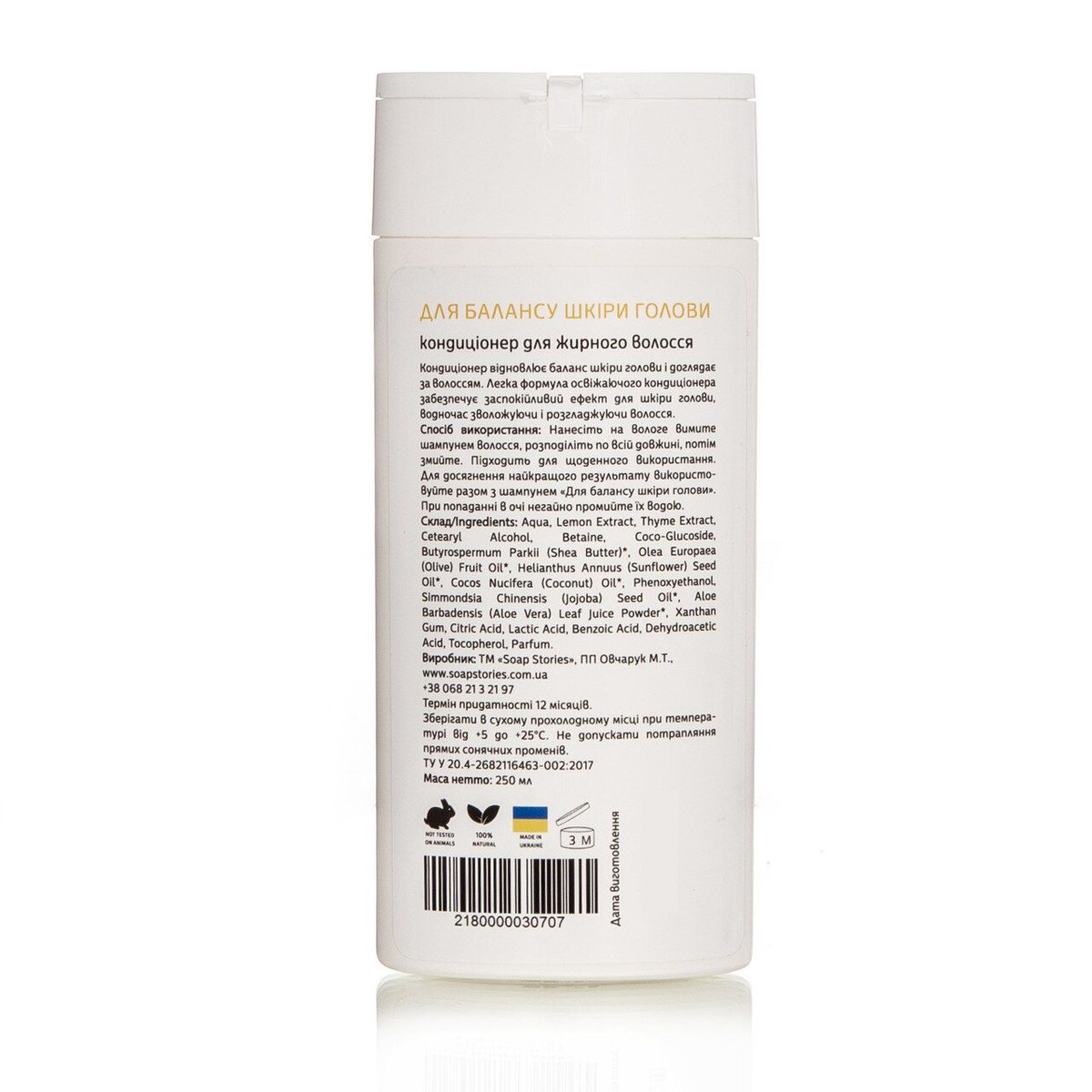 Органічний кондиціонер для жирного волосся "Баланс шкіри голови" з екстрактом Тимьян та Лимона Soap Stories, 250 мл