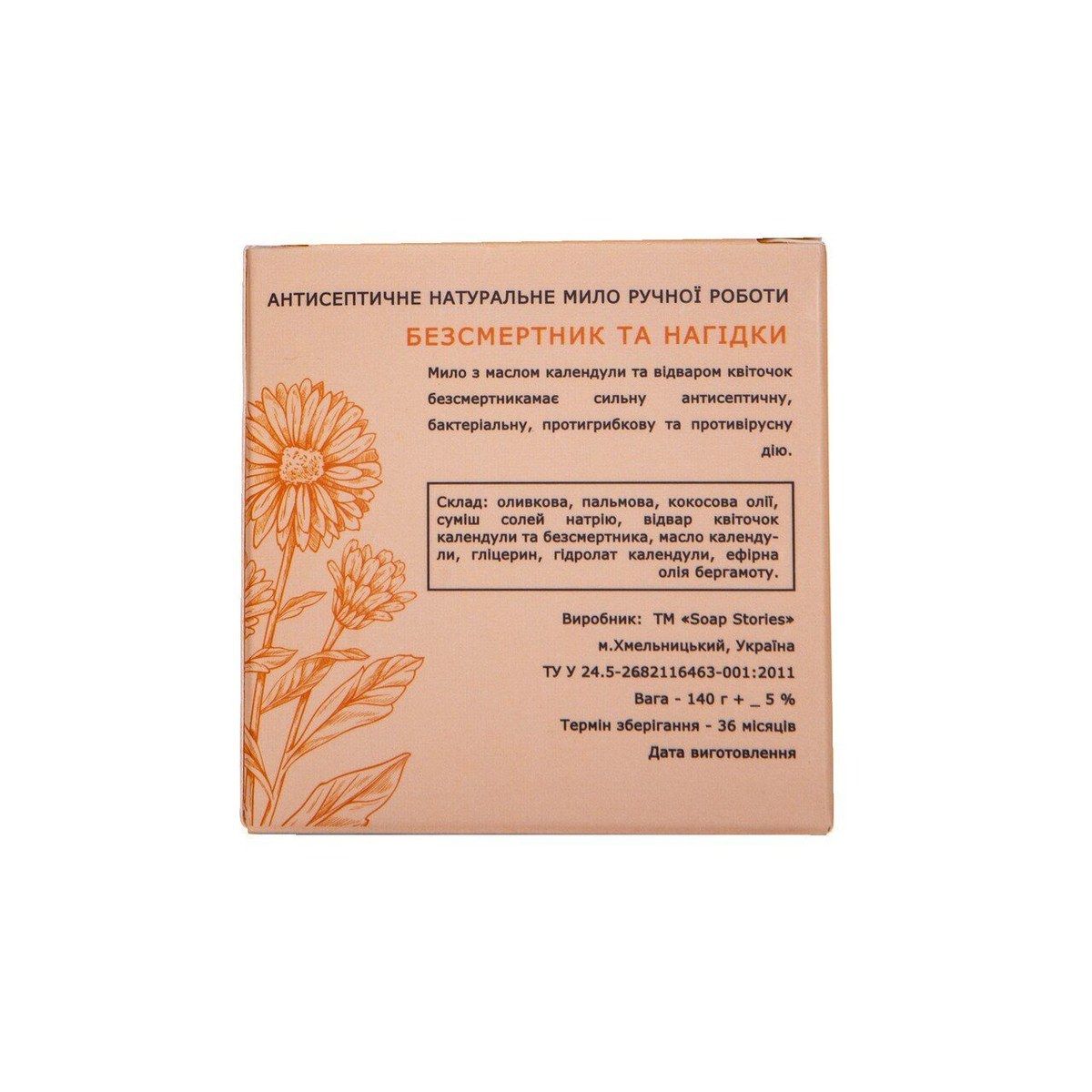 Купити Мило антибактеріальне Soap Stories "Безсмертник та Календула", 100 г, ви зможете у нашому інтернет-магазині limonad з доставкою по всій Україні в тому числі і Київ, Дніпро, Одеса, Харків, Запоріжжя, Одеса, Львів та багато інших населених пунктів.