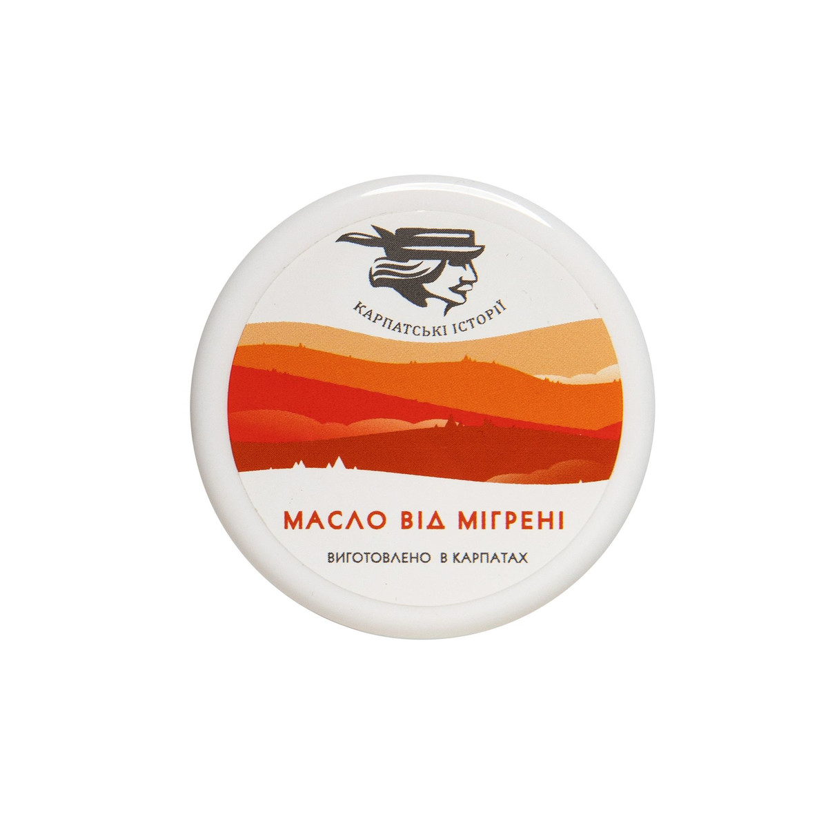 Продукт розроблений за старовинним рецептами карпатських мольфарів, який успішно використовується протягом поколінь. Для швидкого полегшення стану при нападах мігрені. Використовувати при втомі та головному болю.