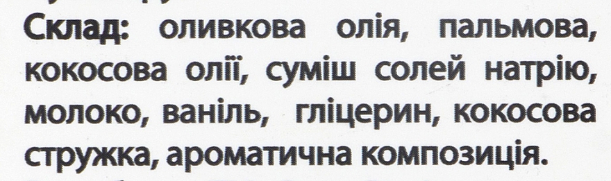 - збагачено маслами оливи та кокосу, тому добре зволожує, глибоко живить, делікатно пом'якшує шкірний покрив;