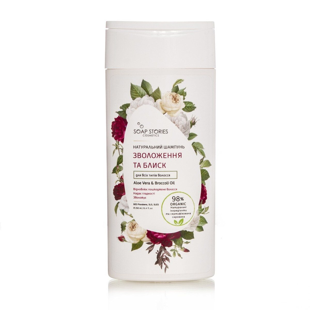 Купити Органічний шампунь для всіх типів волосся "Зволоження та Блиск" з гелем Алоє Віра Soap Stories, 250 мл, ви зможете у нашому інтернет-магазині limonad з доставкою по всій Україні в тому числі і Київ, Дніпро, Одеса, Харків, Запоріжжя, Одеса, Львів та багато інших населених пунктів.