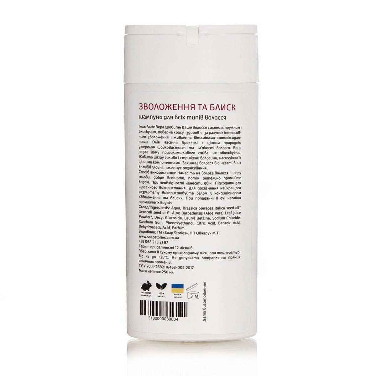 Органічний шампунь для всіх типів волосся "Зволоження та Блиск" з гелем Алоє Віра Soap Stories, 250 мл