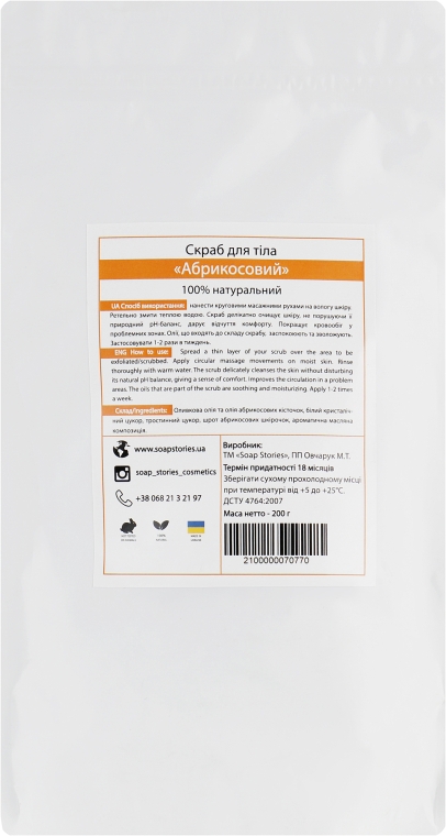Скраб для тіла Soap Stories Абрикос, 200 г (пакет)