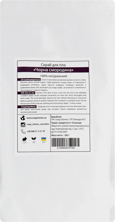 Особливості скрабу для тіла «Чорна смородина» від бренду «Soap Stories» (Doy-pack):
