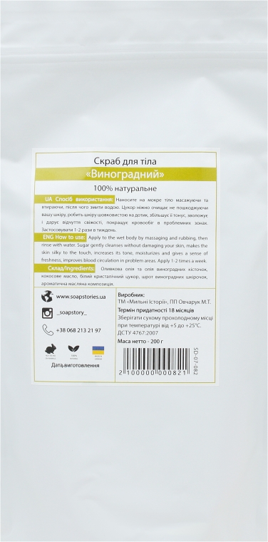 Особливості скрабу для тіла «Виноград» від бренду «Soap Stories»:
