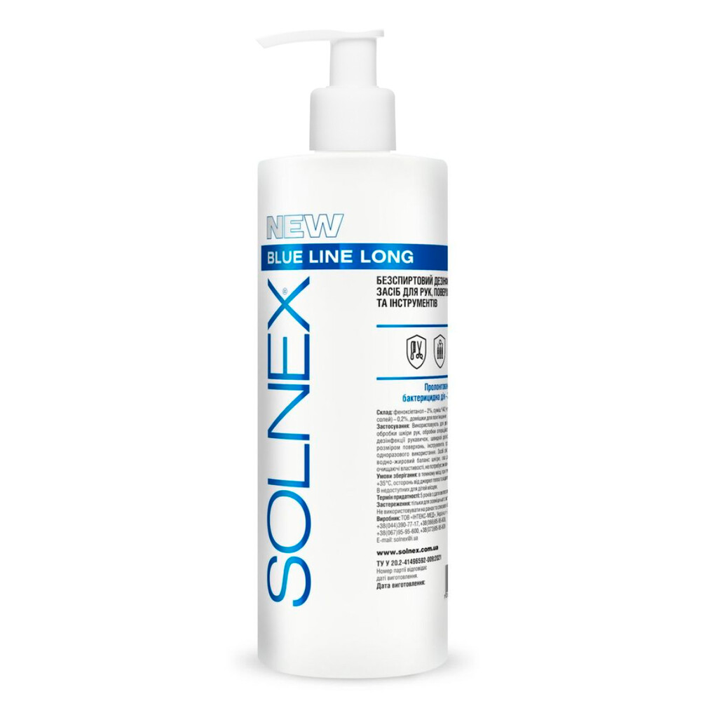 Безспиртовий дезінфекційний розчин для рук, поверхонь, інструментів Solnex Blue Line Long з дозатором, 1000 мл