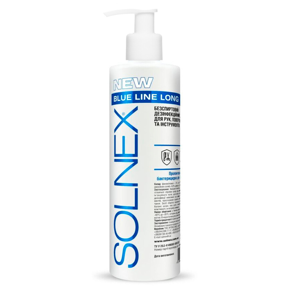 Безспиртовий дезінфекційний розчин для рук, поверхонь, інструментів Solnex Blue Line Long з дозатором, 500 мл