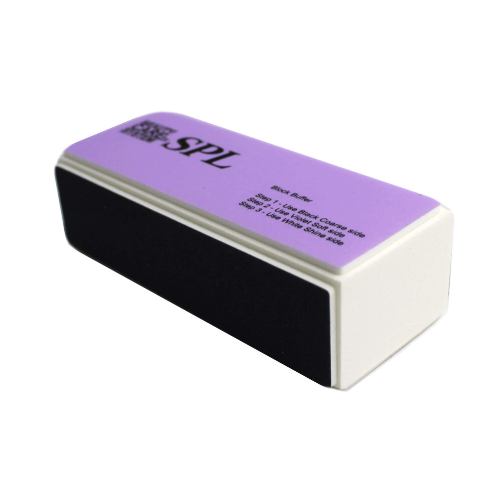 Кожна сторона блоку має різну абразивність – 320, 600 та 3000 грит. Чорна сторона виробу є найжорсткішою з усіх та призначена для шліфування нігтьових пластин. Фіолетова — м'якша і служить чудовим аксесуаром для полірування поверхні нігтів. За допомогою грані білого кольору ви легко додасте нігтьовим пластинам приголомшливий блиск.