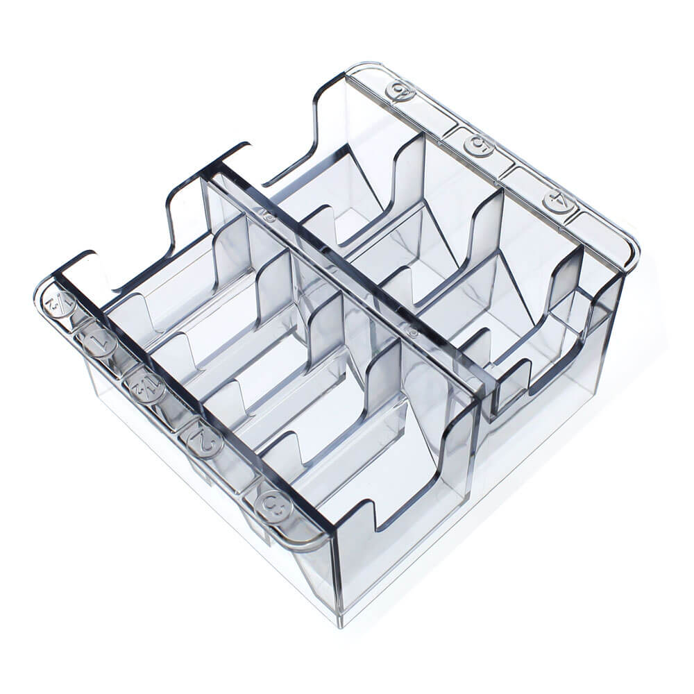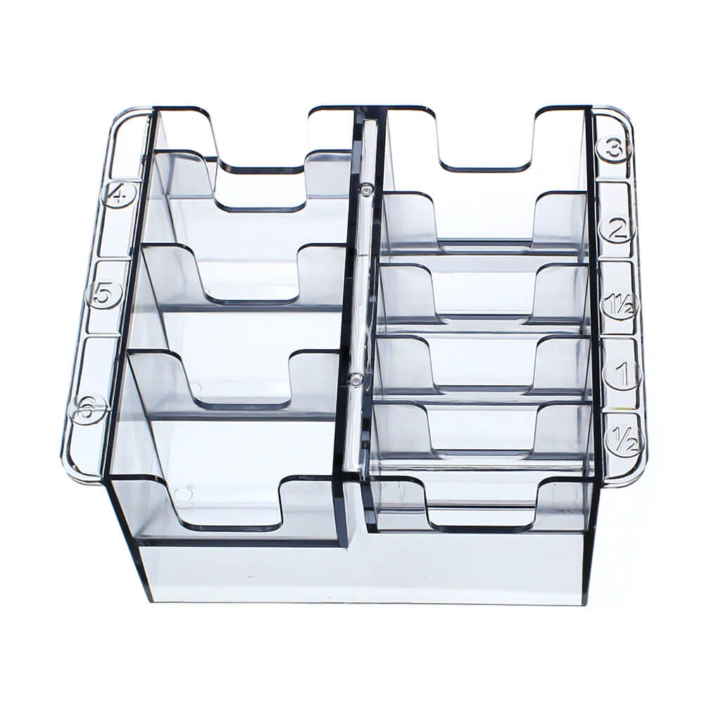 - Прозорий матеріал: Підставка виготовлена з якісного прозорого акрилу, що забезпечує візуальну доступність всіх насадок і легкий доступ до них.