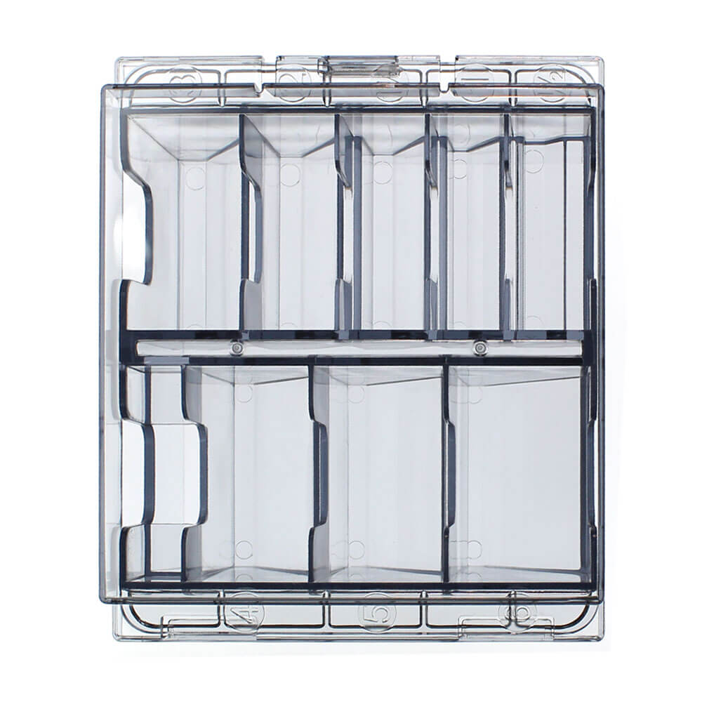 - Прозора кришка: Підставка оснащена зручною прозорою кришкою, яка захищає насадки від пилу та забруднень, а також допомагає підтримувати порядок на робочому місці.