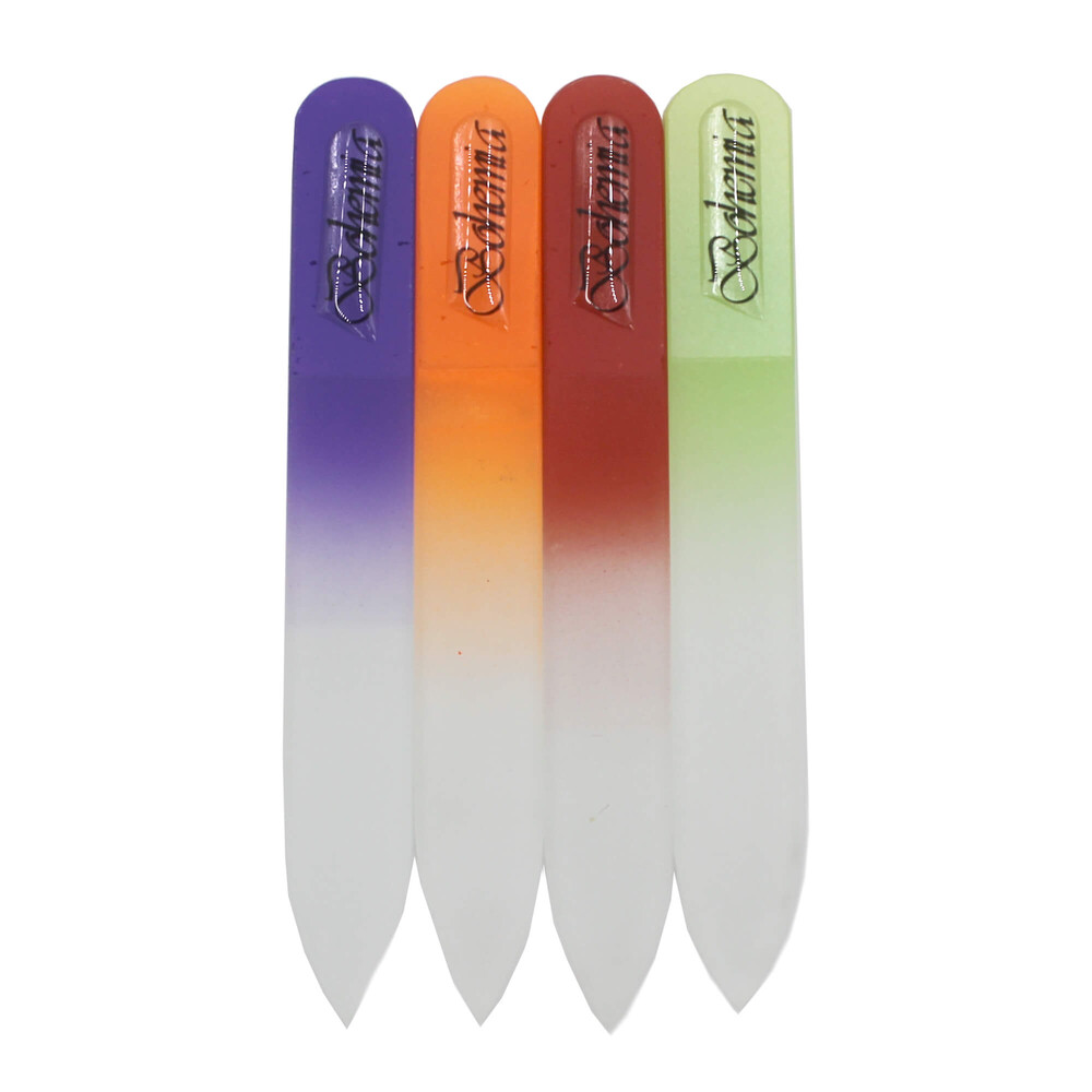 - Абразивна поверхню скляної пилочки акуратно підпилює нігтьову пластину, не призводить до розшарування нігтя;
