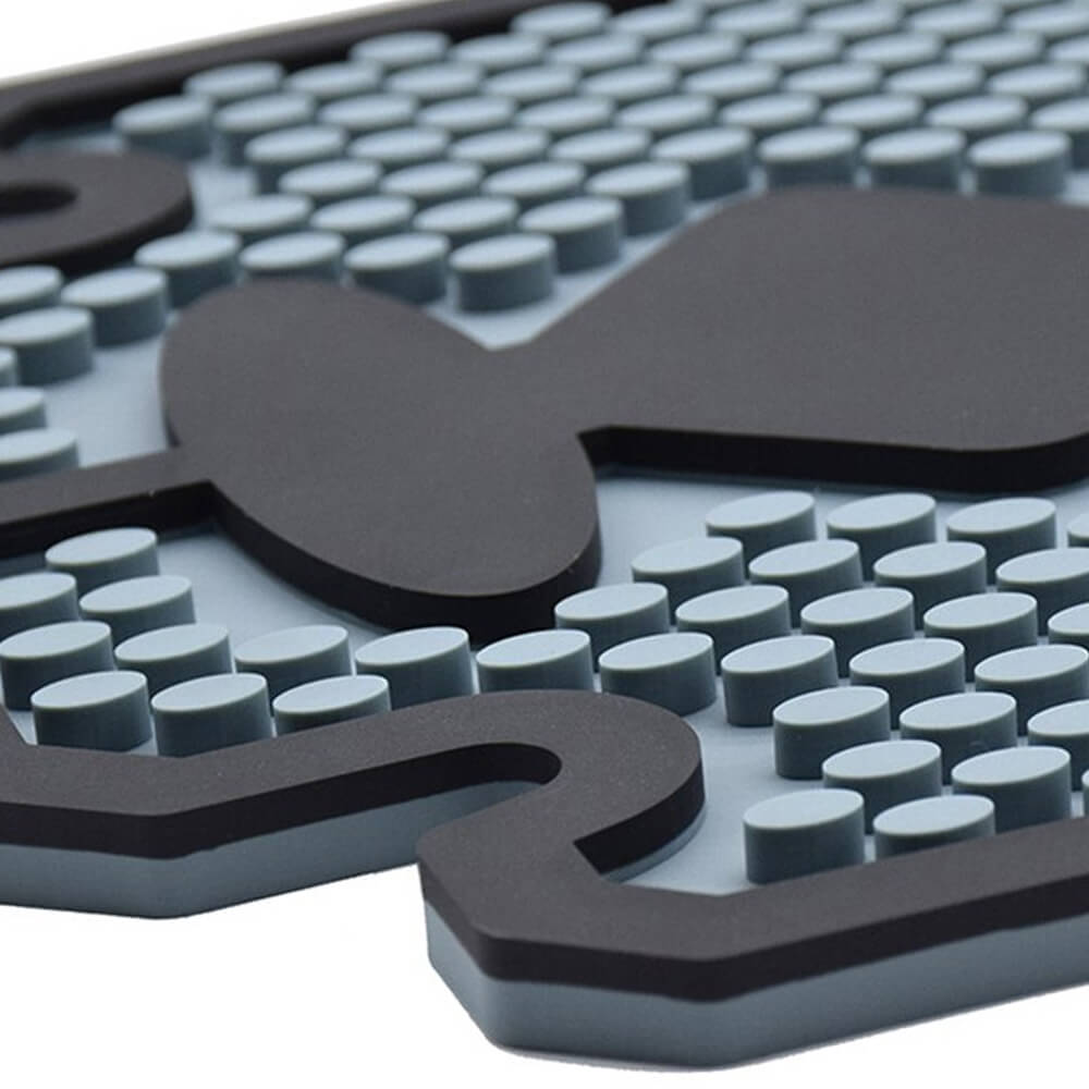 Поверхня килимка має спеціальні пухирці, щоб інструменти не ковзалися. Розмір килимка становить 44х19 см. Легко миється у проточній та мильній воді.
