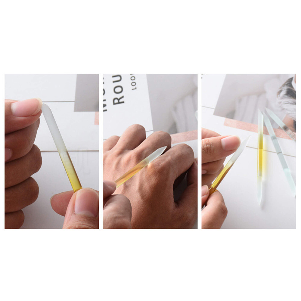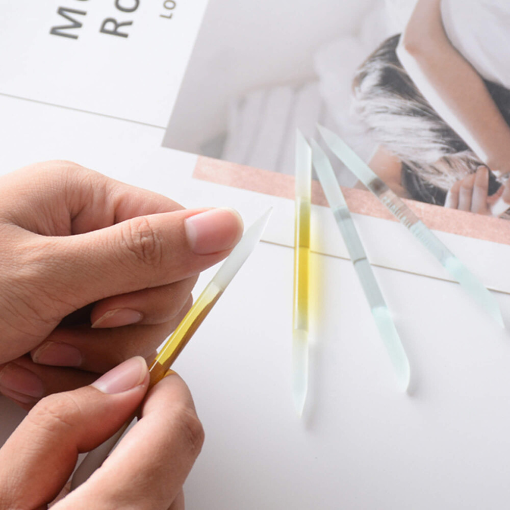 Багатофункціональна манікюрна паличка-містить двосторонню скляну лопатку для кутикули та пилочку для манікюру та педикюру в захисному пластиковому рукаві.