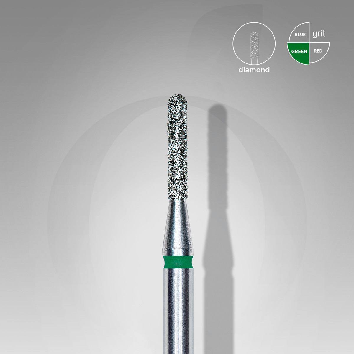 Фреза алмазна STALEKS PRO циліндр закруглений зелена діаметр 1,4 мм / робоча частина 8 мм