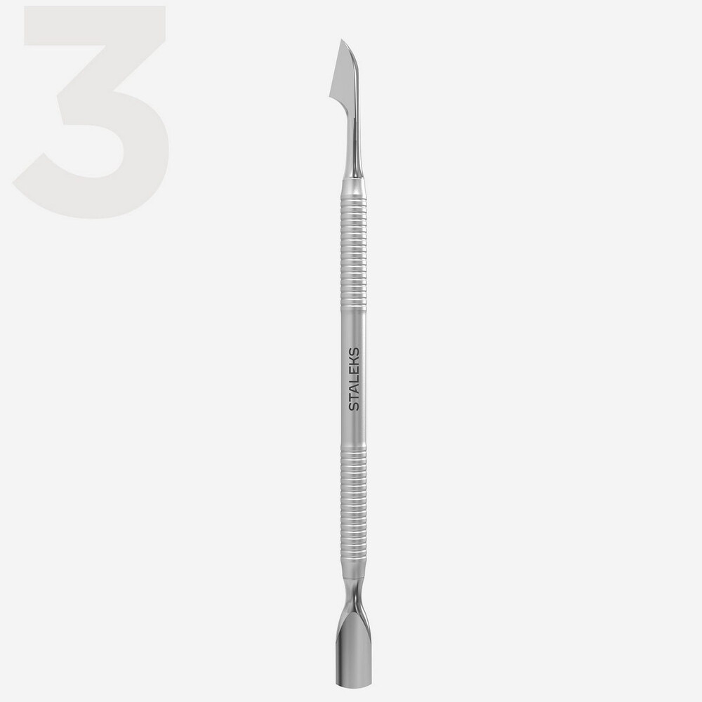 - Лопатка для манікюру: для відсунення кутикули та видалення сухих частинок шкіри з поверхні нігтьової пластини, а також для очищення вільного краю нігтів від забруднень.