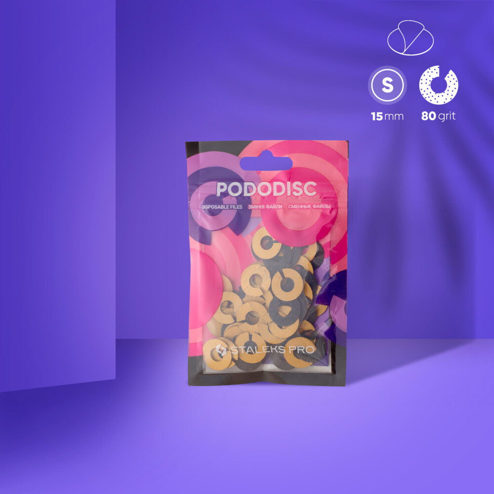 Змінні файли-кільце для педикюрного диска Staleks Pro Pododisc S 15 мм / 80 гріт, 50 шт