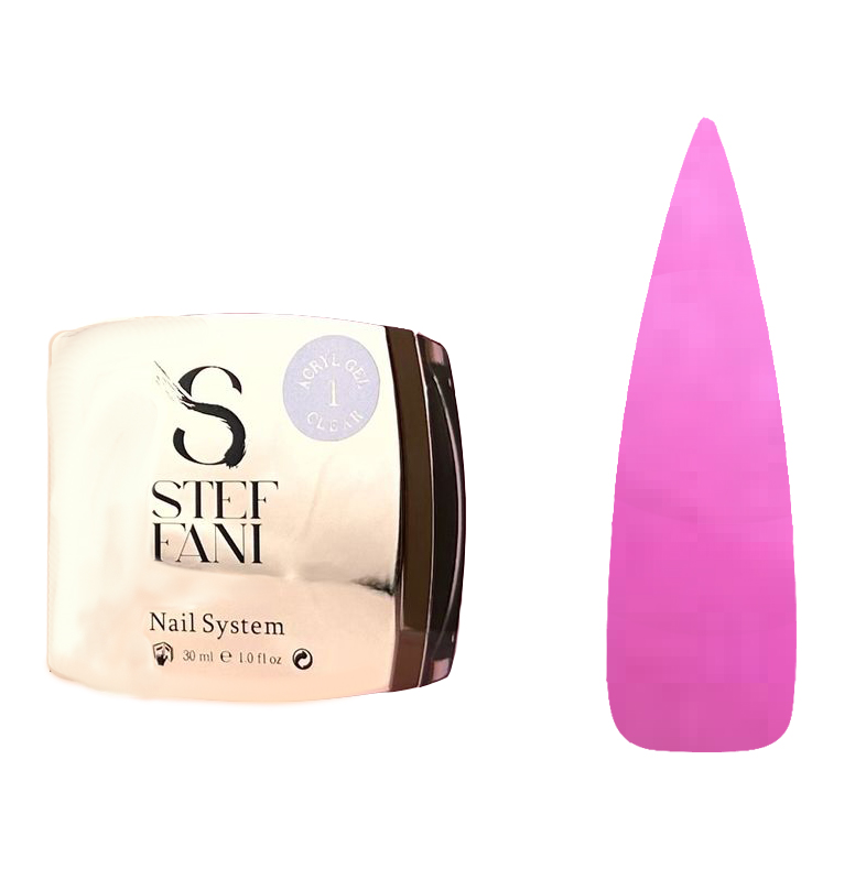 Steffani Acryl Gel – акрил-гель, що дозволяє професійно нарощувати та зміцнювати нігті. У цьому продукті технологам вдалося поєднувати еластичні властивості гелю та міцність акрилу, уникнувши недоліків. Акрил-гель має в'язку пастоподібну консистенцію, що гарантує максимальний комфорт у роботі. При викладанні матеріал дуже слухняний рухам пензлика, не тече, зберігає пластичність, поступово розподіляється і створює ідеальну нейл-архітектуру. Легко запилюється і не утворює дрібного пилу. Крім того, Steffani Acryl Gel – матеріал, що дозволяє зміцнювати тонкі, ослаблені, схильні до розшарування, ламкі нігті. ретельно очистити їх, продезінфікувати та знежирити, потім нанести кислотний праймер і дати висохнути протягом 2 хвилин.