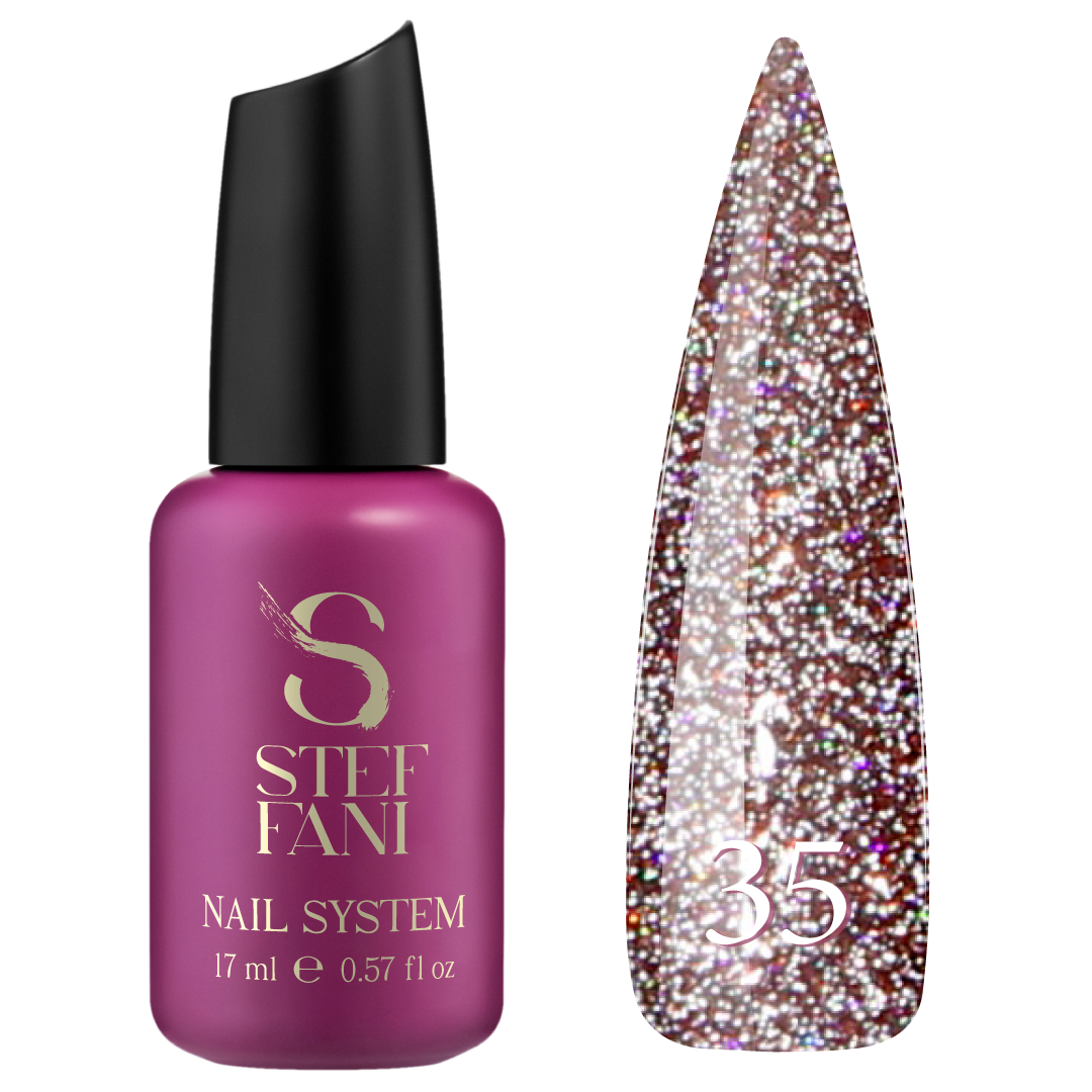 База камуфлююча для гель-лаку Steffani Cover Base 35 світловідбиваюча, колір - сіро-чорний з шимером.