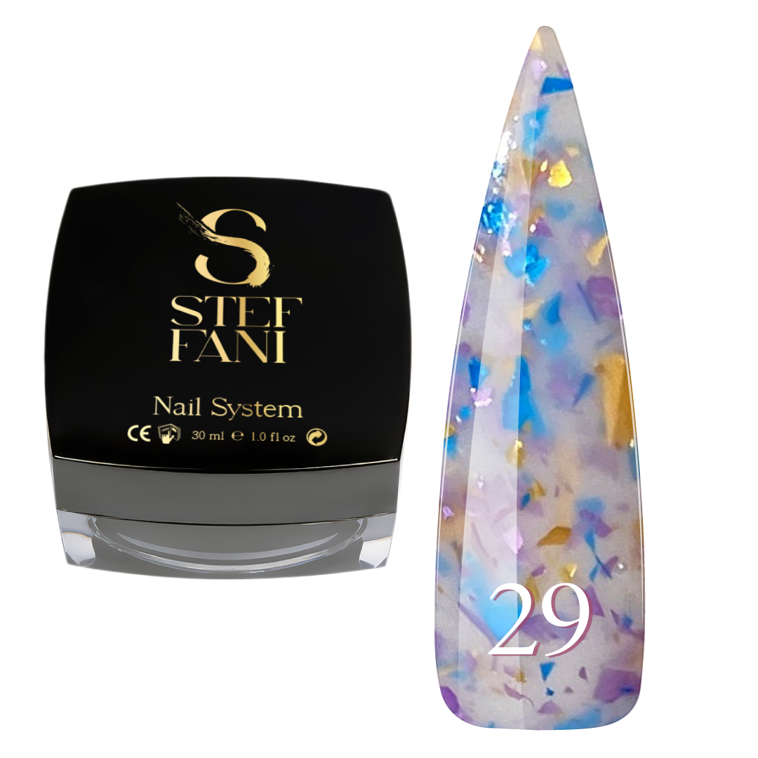 База камуфлююча для гель-лаку Steffani Cover Base №29 напівпрозорий молочний з синьою, рожевою, золотистою поталлю, 30 мл