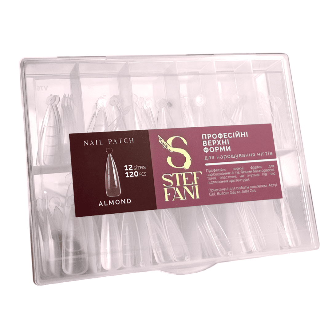 Верхні форми для нарощування нігтів Steffani ALMOND, мигдаль, з розміткою, прозорі 120 шт