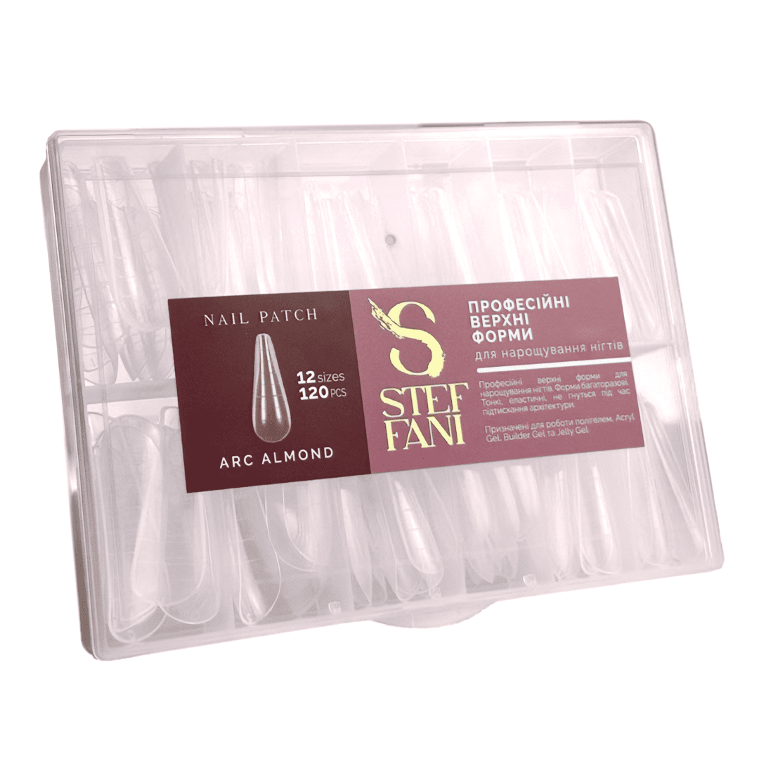 Верхні форми для нарощування нігтів Steffani ARC ALMOND, арочний мигдаль, з розміткою, прозорі 120 шт