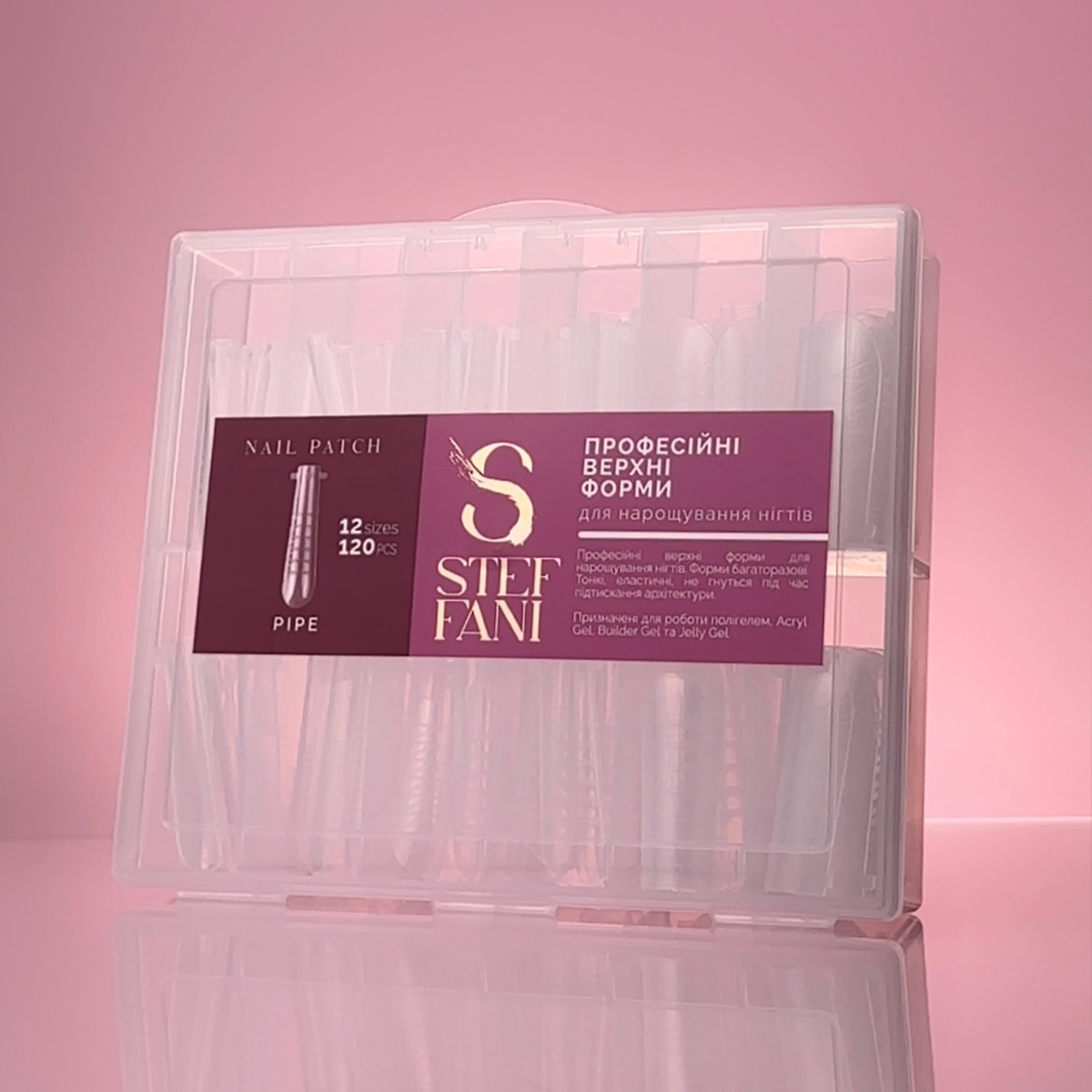 Верхні форми для нарощування нігтів Steffani PIPE, труба, з розміткою, прозорі 120 шт