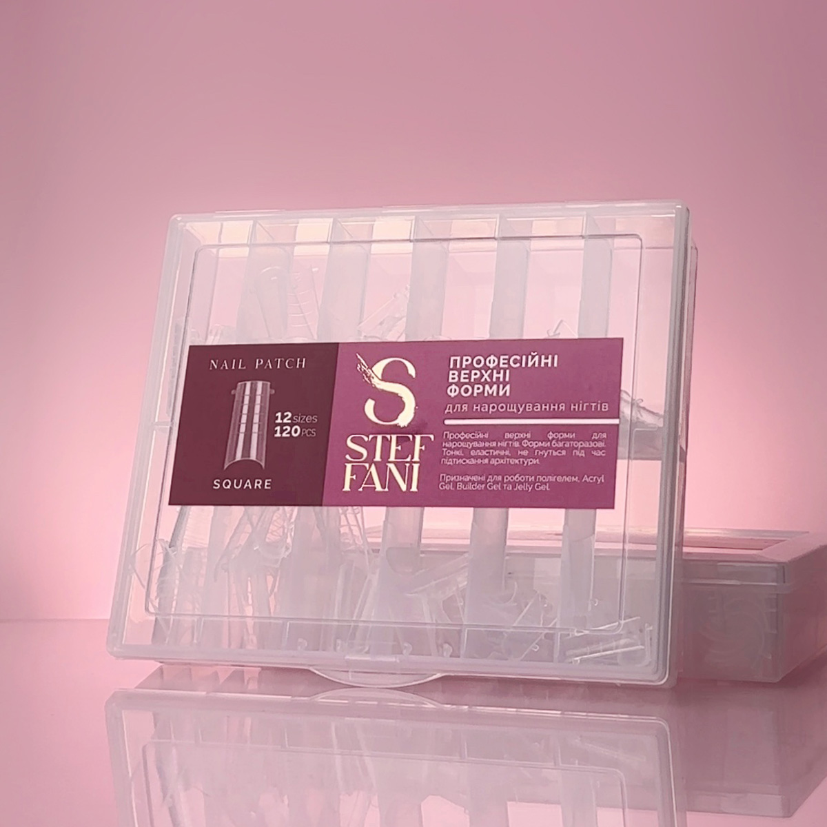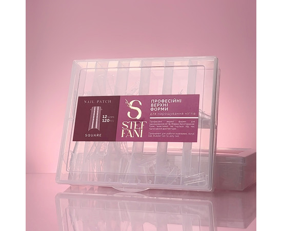Верхні форми для нарощування нігтів Steffani SQUARE, квадрат, з розміткою, прозорі 120 шт
