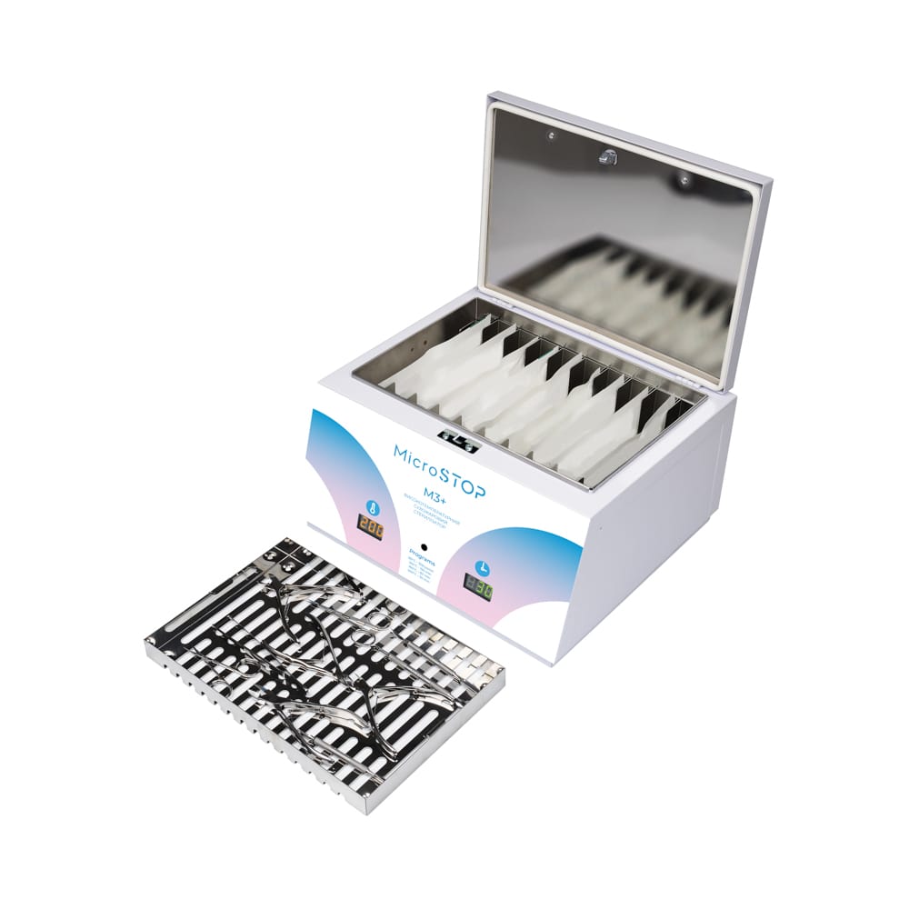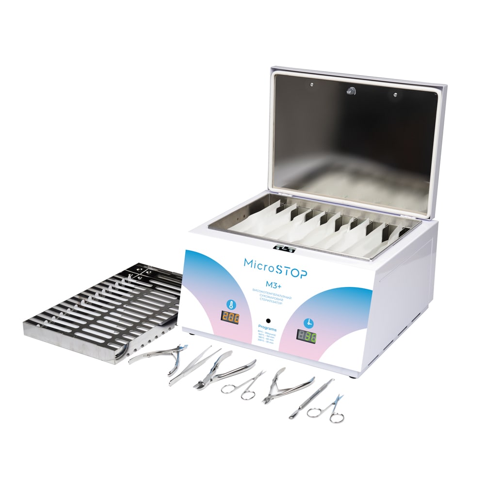 Стерилізатор Мікростоп М3+ у забарвленні Rainbow найбільший із сухожарів нашої компанії з вертикальним завантаженням, відмінно підійде для великих салонів краси, великих нейл студій та навчальних центрів.Габарити: 38,5 см х 26 см х 35,5 смМікростоп М3+ керується за допомогою однієї кнопки. Працює у трьох автоматичних режимах, затверджених МОЗ України + режим сушіння інструментів:200 °C – 30 хв,180 °C – 60 хв,160 °C – 150 хв.80 °C – 30 хвилин (сушіння)Скидання настройок здійснюється шляхом відключення та наступного увімкнення клавіші увімкнення-вимкнення, розташованої на задній панелі поруч зі штекером.У сухожарі Мікростоп можна стерилізувати витримують температуру 200С металеві та скляні інструменти, що застосовуються майстрами манікюру, тату, татуажу, пірсингу, а також косметологами, підлогами, бровистами. Принцип роботи приладу – стерилізація сухим гарячим повітрям.ЗАГАЛЬНІ ХАРАКТЕРИСТИКИВисока продуктивність і триваліший термін служби за рахунок одночасної стерилізації великої кількості інструментівЕлектронний контроль функційСвітлове табло з показниками температури та часу на передній панеліПривабливий дизайнНе тупить інструментиЗнищує всі мікроби та вірусиСертифікований в Україні