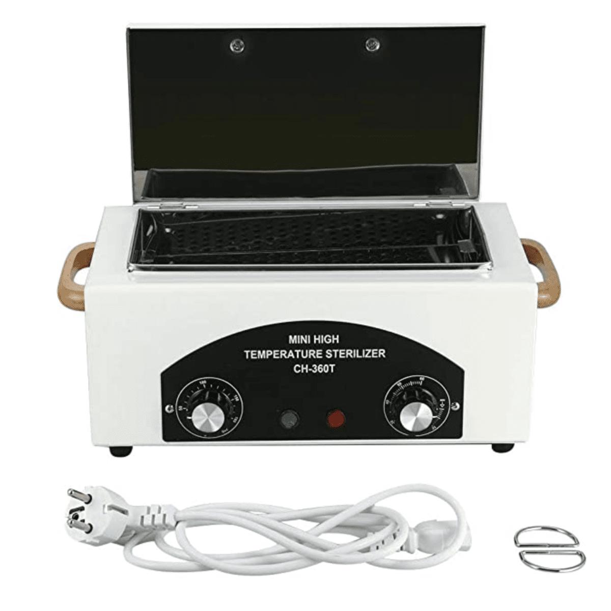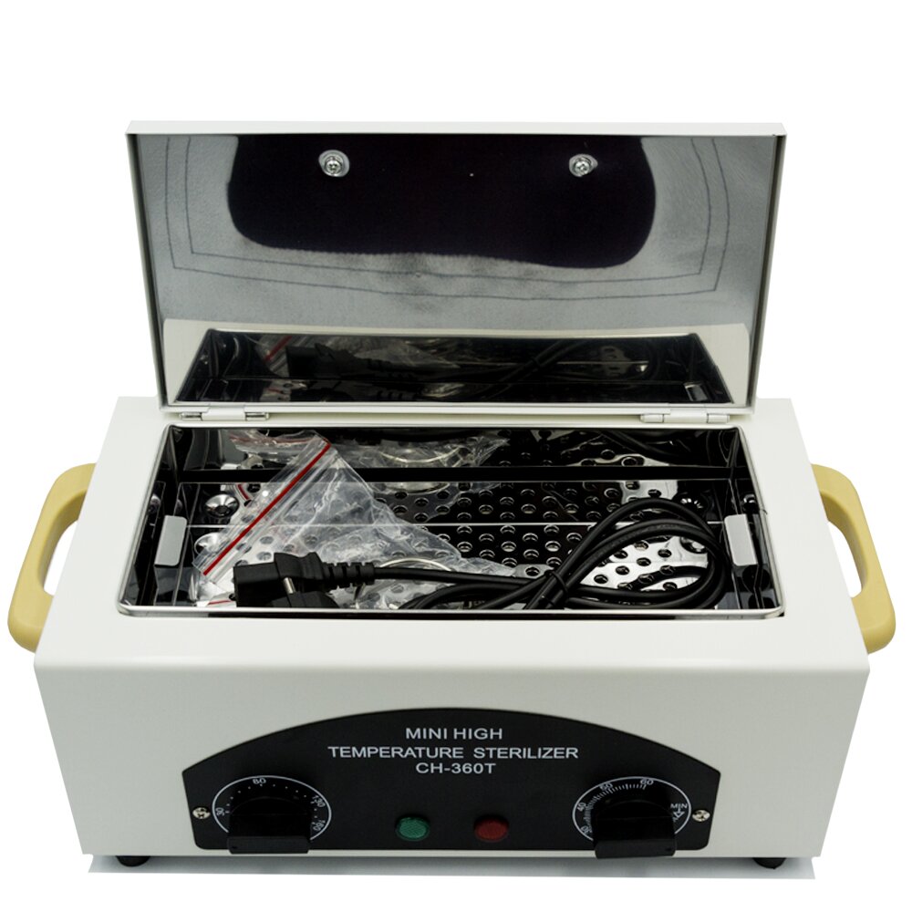 Сухожар CH 360 T — сухожаровий стерилізатор, використовується для комплектації салонів краси, професійних манікюрних кабінетів. Доступний за ціною, функціональний і надійний стерилізатор забезпечує високоефективну очистку і дезінфекцію речей, які майстер використовує в роботі. Обробка здійснюється внаслідок впливу на інструменти нагрітого повітря протягом 60-ти хвилин. Обсяг внутрішнього відсіку - 1,8 л, потужність пристрою - 300 Вт, максимальна робоча температура - 220 градусів.