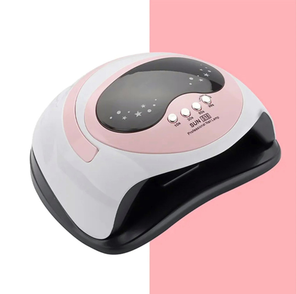 SUN S16 на 168 Вт. - лампа для манікюру та педикюру (з таймером, дисплеєм та знімним дном) Рожевий
