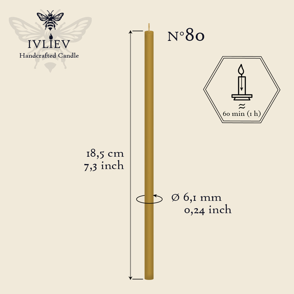 Свічка церковна із бджолиного воску №80 діаметр 6.1 мм, 18.5 см, 10шт