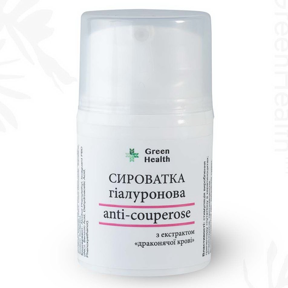 Купити Сироватка для обличчя гіалуронова "Anti-Couperose" з екстрактом "драконячої крові" Green Health СС-009, 30 мл, ви зможете у нашому інтернет-магазині limonad з доставкою по всій Україні в тому числі і Київ, Дніпро, Одеса, Харків, Запоріжжя, Одеса, Львів та багато інших населених пунктів.