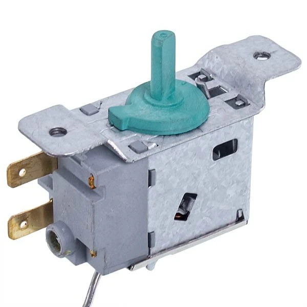 Застосування: Термостат регулює роботу компресора в холодильнику, вмикаючи його в той момент, коли температура всередині досягає певного рівня, і вимикаючи його, коли температура стає досить низькою. Це дає змогу підтримувати стабільну температуру всередині холодильного відділення.
