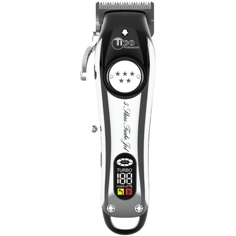 Дизайн моделі ергономічний, сучасний і досить продуманий. Корпус досить строгий, виготовлений із пластику, щоб полегшити машинку. Також нижня частина корпусу має легкі заглиблення для пальців, щоб надійніше утримувати машинку під час роботи. Якщо Ви цінуєте практичність та надійність – дана модель створена для Вас! Також варто відзначити, що модель оснащується преміальними насадками з металевими клямками. Особливості моделі TICO Professional 5-Stars Turbo Jet Silver >