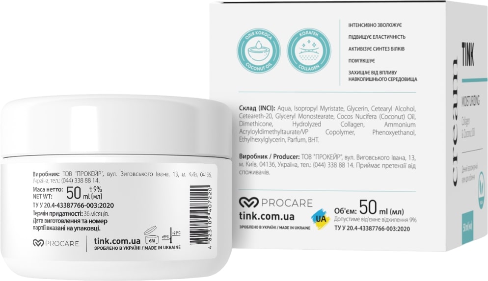 Денний зволожуючий крем для обличчя Tink Moisturizing Collagen & Coconut Oil, 50 мл