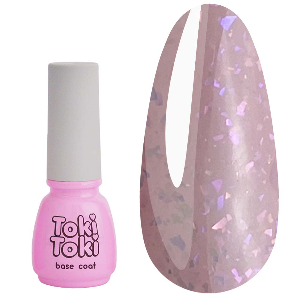 Toki Toki - це стовідсотковий must have і must use в світі nail-індустрії. База для манікюру стане ідеальною підкладкою для покриття нігтів гель-лаком. Камуфлююча база Stars Base зручна в роботі, процес вирівнювання нігтьової пластини і нанесення основного шару спрощується. Виробник Toki-Toki створив базу для гель-лаку, до складу якої входять шматочки поталі. При нанесенні бази можна використовувати як класичну технологію, так і крапельний метод (техніка зміцнення нігтів і вирівнювання нігтьової пластини). Первісний блиск радує довгий час, а покриття не підведе в тривалій носці манікюру.