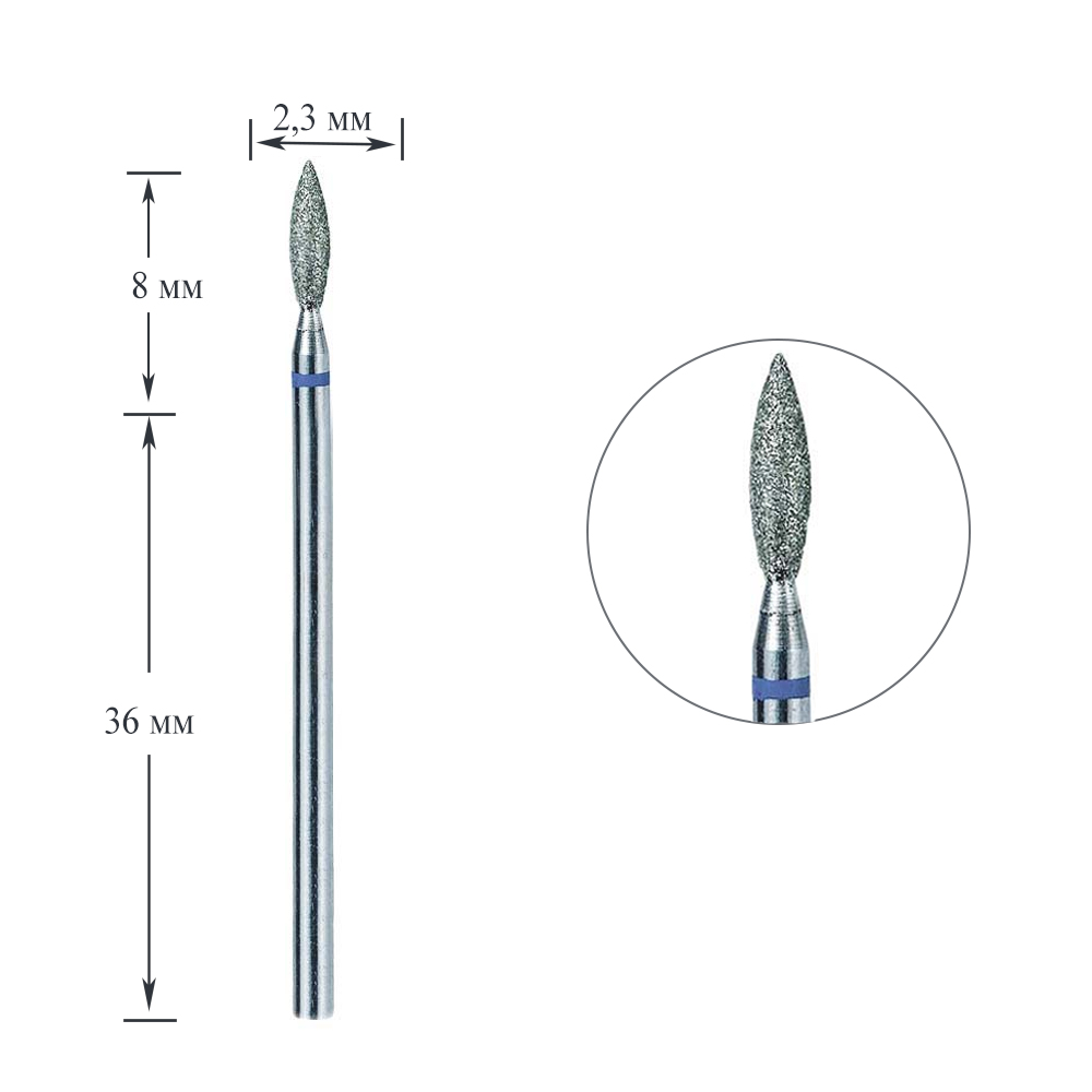 Фреза алмазна Touch 023 H02310D-M полум'я гостре синє 2.3/8 мм