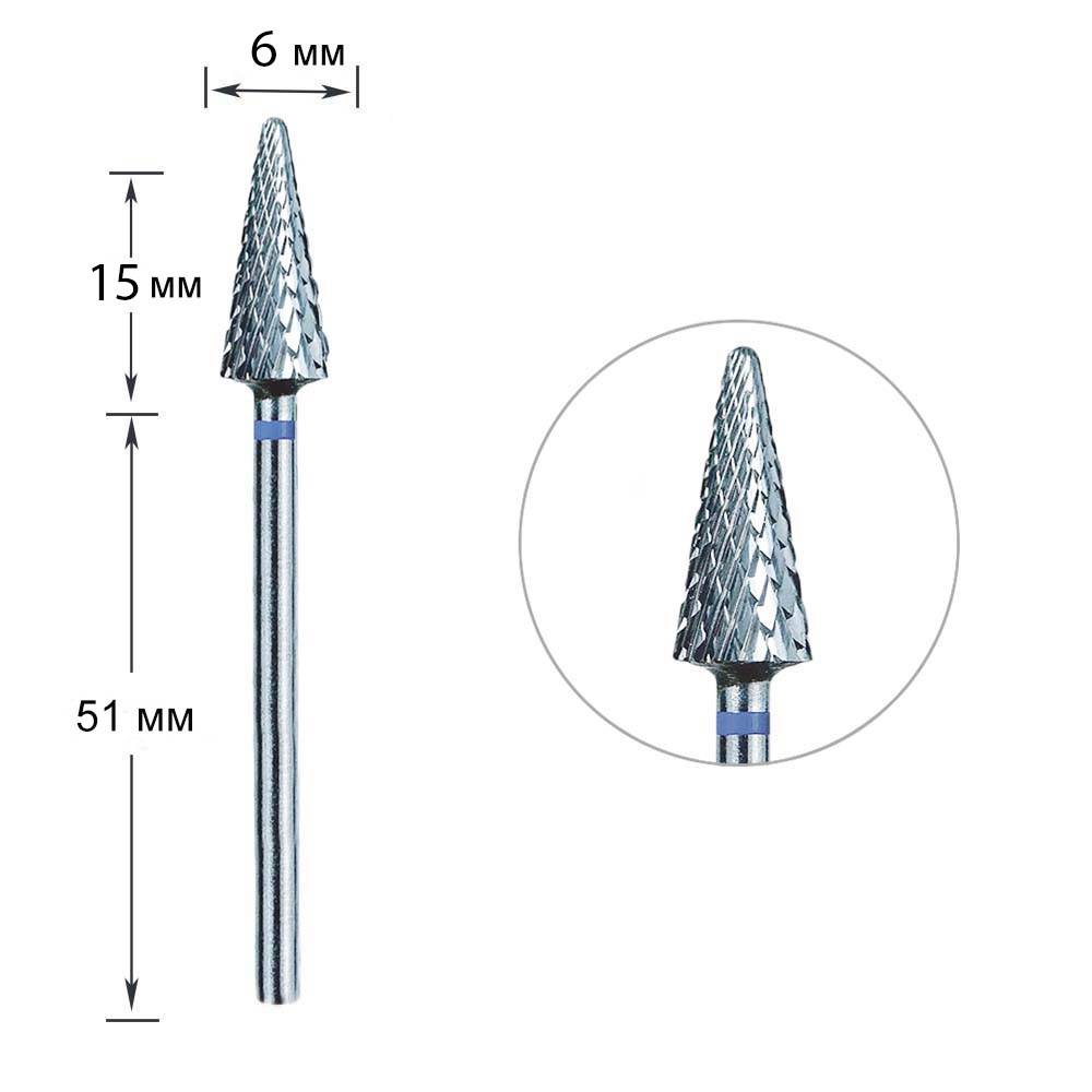 Фреза твердосплавна Touch L0615A20-М конус з гострим кінчиком синя 6/15 мм