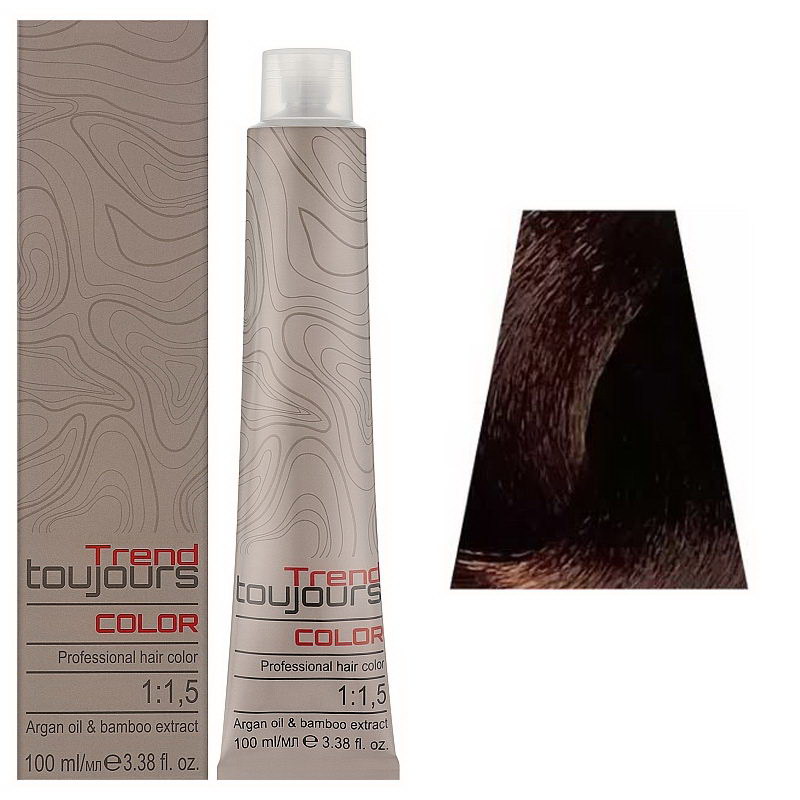 Насичений, яскравий колір волосся, стійкість і догляд — все це можливо з крем-фарбою Trend Toujours Color від італійського бренда Trend Toujours. Засіб забезпечує якісне фарбування, зберігає природну красу і здоров'я волосся завдяки унікальній формулі з спеціальними безпечними компонентами. Крем-фарба підходить для будь-якого типу волосся, не тільки надає йому насиченого відтінку, але й захищаючи від шкідливого впливу фарбувальних пігментів. Арганова олія та екстракт бамбука у складі збагачують засіб антиоксидантними, пом'якшувальними і зміцнювальними властивостями, робить процес фарбування не лише естетично приємним, але й корисним для волосся.