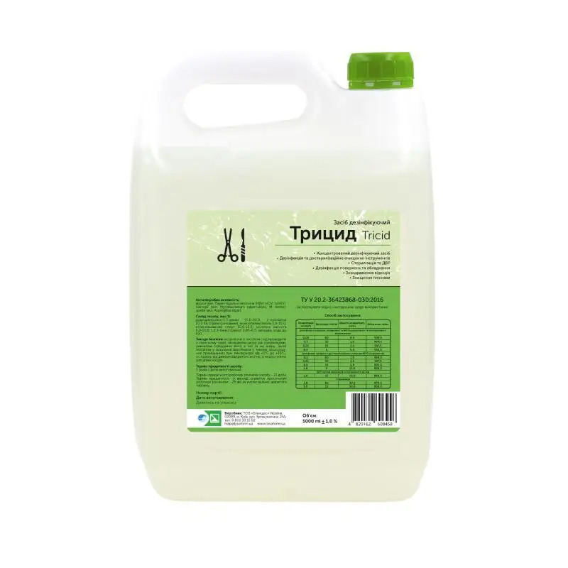 Трицид – засіб для дезінфекції, стерилізації медичних інструментів, 5л. Концентрований засіб на основі третинних амінів.